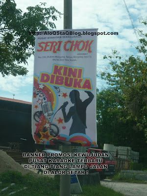 Pagi semalam , sewaktu aku dan team bantuan banjir sedang melalui Jalan Putra (alor Setar) - Jalan Kuala Sungai (Alor Setar) - ke Kangar Perlis, untuk menghulurkan bantuan kepada mangsa-mangsa pasca banjir, bijik mata aku terpandang beberapa keping banner promosi SEBUAH LAGI PUSAT KARAOKE BARU DI BUKA di Bandaraya "ISLAM" Alor Setar !!!!